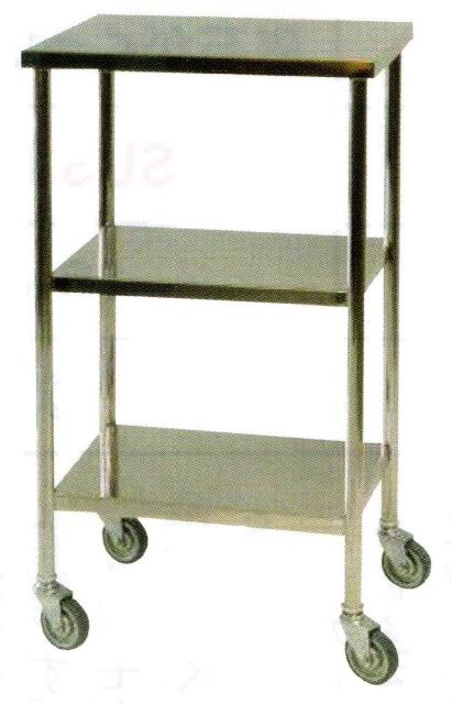・ステンレス製ワゴンは医療、研究、学校、各種施設、で利用出来ます。天板は樹脂製、中板2段、4方ガード付き。
