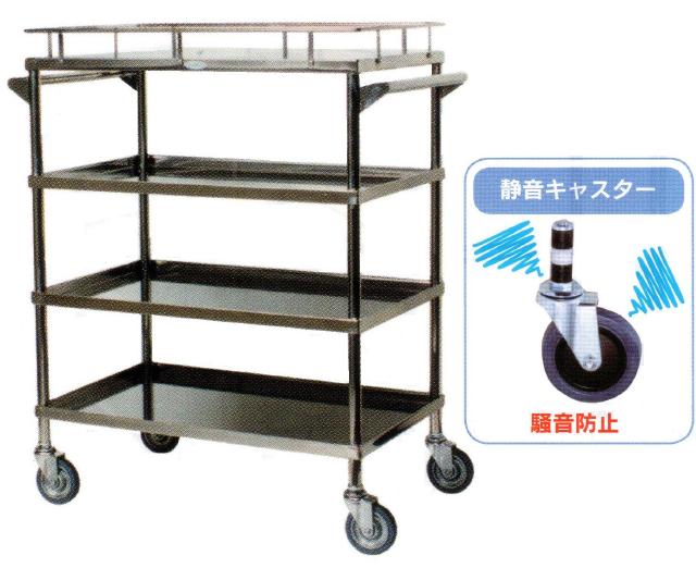 ステンレス「静音」ワゴン『溶接完成品』/4段、上段ガード付き・3段皿型(SUS304製)